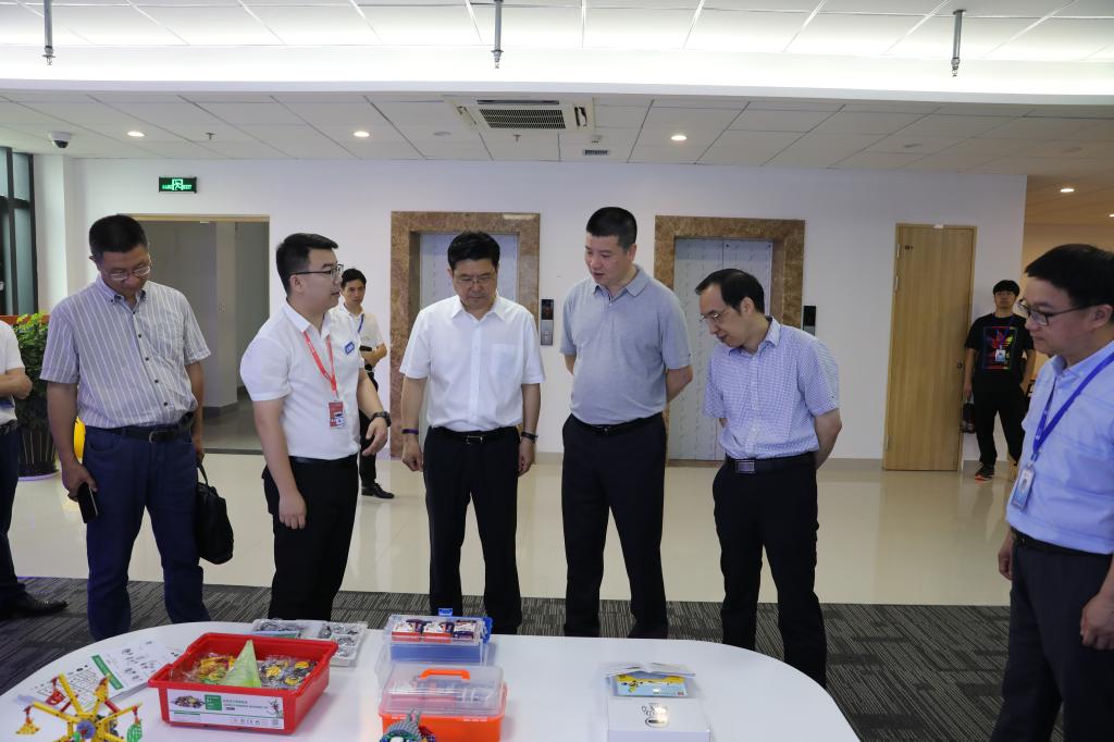 崔凤军一行在城投集团党委书记、董事长俞宏,党委副书记陈兴忠等陪同下参观了科技创新楼、创业指导中心,听取了集团基本情况、业务板块及高铁新区区块开发等情况的介绍。双方就打造党建共同体、开展科研合作、创新人才培养模式、培育创业项目等进行了深入交流。