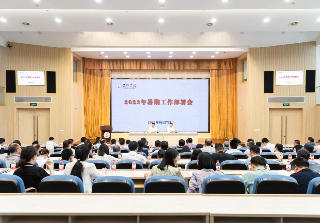 为合理安排暑期轮休时间,持续推进“升大、申博、创一流”,6月27日上午,学校召开2023年暑期工作部署会,校党委书记崔凤军部署暑期工作,党委副书记、校长乐传永主持会议,校领导班子成员出席。
