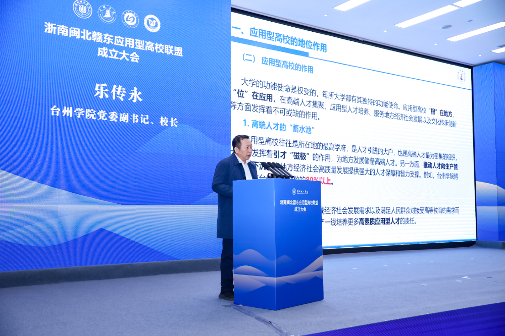 12月14日上午,由温州理工学院联合三明学院、宁德师范学院、赣东学院共同发起的“浙南闽北赣东应用型高校联盟”在温州理工学院成立并启动,校长、党委副书记乐传永作为特邀专家作《应用型高校建设的逻辑与路径选择》主旨报告。